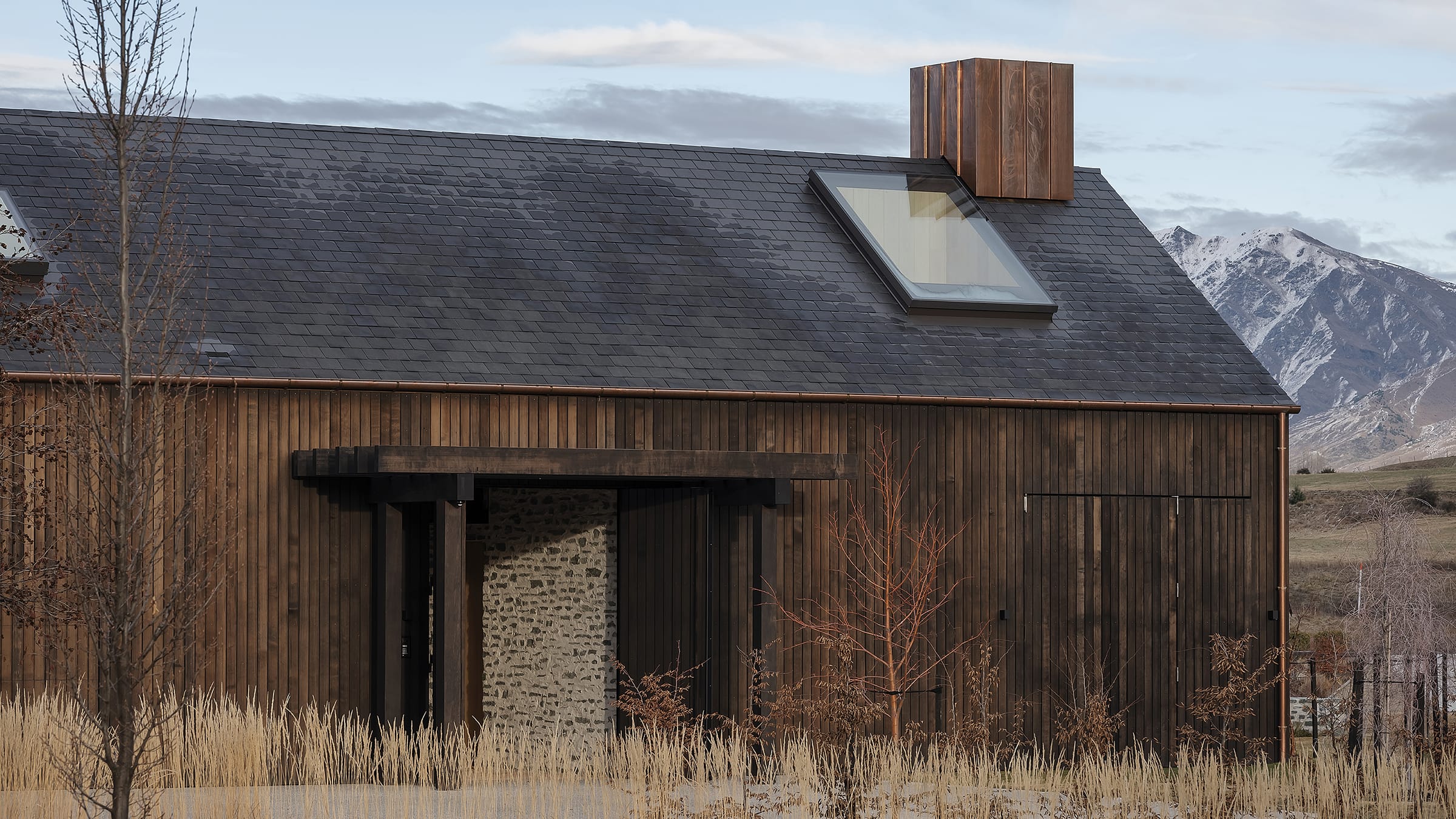The brief was for a flexible second home that could be both intimate and spacious, catering to its owners alone, or a larger and independent party of guests. The architect conceived it as two related barn-like structures, defined by simple, gabled rooflines, with a portcullis entrance on the streetside building that generates a sense of privacy and protection.